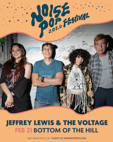 ![]() Saturday February 21 2026 7:30PM doors -- music at 8:30PM ••• 21 AND OVER $22 in advance / $25 at the door Noise Pop Festival 2026 presents... Jeffrey Lewis & the Voltage indie-rock-folk TBA ... TBA ... |