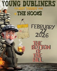 2026![]() 8:00PM doors -- music at 9:00PM ••• ALL AGES $30 in advance / $40 at the door The Hot Toddy Tour Young Dubliners youngdubliners.com Celtic Rock The Hooks thehooksmusic.com Irish-influenced indie pop rock. Young Dubliners -from Dublin, IE -After thirty years as one of the world’s leading Celtic Rock bands, The Young Dubliners have begun work on their tenth studio album (with longtime producer Irish-born Tim Boland) while still maintaining their busy tour schedule. They have returned to the road post-pandemic stronger than ever and determined to bring their fusion of Celtic and rock music to as many people as they can. The band is Keith Roberts (vocals / guitar), Chas Waltz (Violin, keys, vocals), Justin Pecot (guitar, vocals), Dave Ingraham (drums) and Ethan Jones (bass guitar). With a batch of incredible new songs and an undeniable energy, the band is excited to bring their show to festivals, theaters and clubs around the world. “We want to be the band who reminds the world how important a good gig can be to our sanity after what we’ve all been through,” says Roberts. For only the second time the band is looking to its fans to finance the album instead of a traditional record company. “The business has changed so much over our lifetime that it no longer makes sense for us to take money from a label and then owe it all back,” adds Roberts. “Making all our supporters co-producers is a far more rewarding way to make a record and allows us to maintain control all the way”. The Young Dubliners have released nine albums to date. In recent years, the band has appeared twice on ABC’s Jimmy Kimmel Live, had songs featured in TV shows (Sons Of Anarchy, Human Target) and toured extensively as a headliner and as the opener for such a diverse list of artists as Collective Soul, Jethro Tull, Johnny Lang, Los Lobos and Chris Issak. Although the Young Dubliners sound is most commonly called Celtic Rock, that label can often be misleading. The Irish influence is certainly there, but it’s not the only influence that bursts through on their albums or live shows. After all, several of the band members have no Irish roots of any kind. “That was always the idea,” Roberts said. “The sound was intended to be a hybrid because we all come from different backgrounds. Even though I am from Ireland, a lot of the music I listened to growing up wasn’t Irish at all, but when I got here, I got homesick and developed a new appreciation for Irish Music. In truth the Celtic riffs can just as easily come from the American band members. Everyone writes now so you never know what you’ll end up with.” The Hooks -from San Francisco, CA -Hailing from San Francisco via Ireland, The Hooks are an unstoppable force. Their shows are a raw, explosive spectacle, each performance an unrelenting surge of energy that leaves audiences in a state of euphoria and chaos. From the legendary Fillmore to the underground dens of the Bay Area, they’ve made every stage their battlefield, winning over fans with their unbridled intensity. |