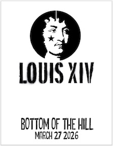 2026![]() 7:30PM doors -- music at 8:30PM ••• 21 AND OVER $20 in advance / $25 at the door -------on sale 10/3 Louis XIV louisxivmusic.com garage rock revival, post-punk revival, and mod revival TBA ... Louis XIV -from San Diego, CA -The core unit of San Diego's Louis XIV had originally played together in the rootsy, alt-rocking Convoy, which issued an album called Black Licorice in 2001. Having moved on by 2003, vocalist/guitarists Jason Hill and Brian Karscig and drummer Mark Maigaard hooked up with bassist Jimmy Armbrust and began fleshing out the Louis XIV concept -- irreverent, oversexed lyrics and songwriting that channeled glam, scratchy punk, and vintage Rolling Stones. A self-recorded EP caused quite a stir locally, MP3s helped spread that buzz to England, and Louis XIV released more material to keep up with the growing demand. That spring and summer they played the 2004 South by Southwest festival, toured the U.S. with the Killers and Von Bondies, and signed with Atlantic Records, which issued the introductory EP Illegal Tender in January 2005 and the debut full-length The Best Little Secrets Are Kept the following March. After time spent touring -- and being banned in Alabama for the nature of their lyrics -- the band returned in 2008 with their second album, the decidely more somber and world-weary Slick Dogs and Ponies. TBA - - |