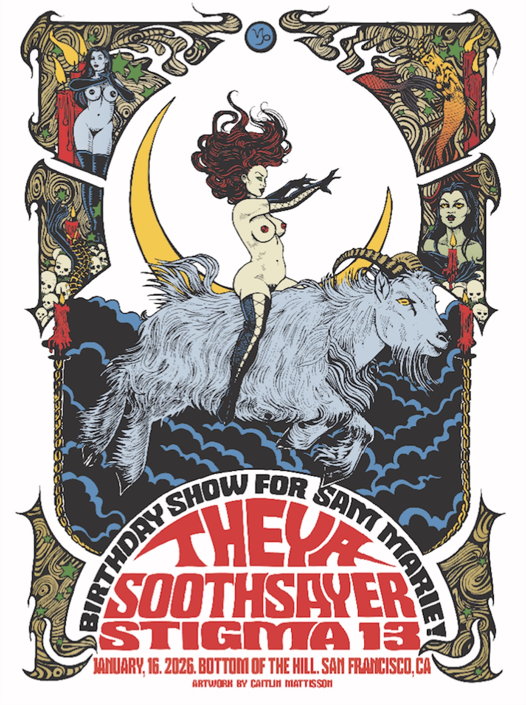 ![]() Friday January 16 2026 8:00PM doors -- music at 8:30PM ••• 21 AND OVER $15 Theya heavy metal doom psych sludge Soothsayer featuring members of Theya and Castle metal Stigma 13 punk rocknroll |