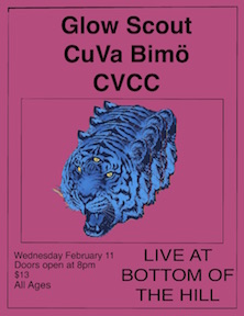 ![]() Wednesday February 11 2026 8:00PM doors -- music at 8:30PM ••• ALL AGES $13 Glow Scout indie rock CuVa BiMo grunge, goth, new wave, post-punk-rock CVCC fuzz pop \ jangle pop |
