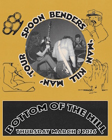 ![]() Thursday March 5 2026 8:00PM doors -- music at 8:30PM ••• ALL AGES $17 in advance / $20 at the door Spoon Benders progressive psych-rock TBA ... TBA ... |