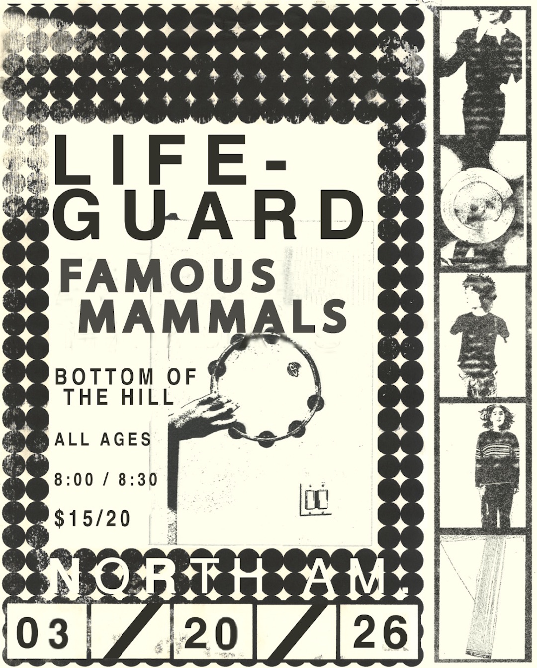 ![]() Friday March 20 2026 -----rescheduled from 7/26/2025 8:00PM doors -- music at 8:30PM ••• ALL AGES $15 in advance / $20 at the door Lifeguard alternative punk indie noise rock Famous Mammals art rock post-punk TBA ... |