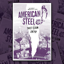 ![]() Saturday March 21 2026 8:00PM doors -- music at 9:00PM ••• ALL AGES $20 in advance / $25 at the door American Steel Punk Sweet Gloom Power-pop punk Jen Pop from The Bombpops skate punk |