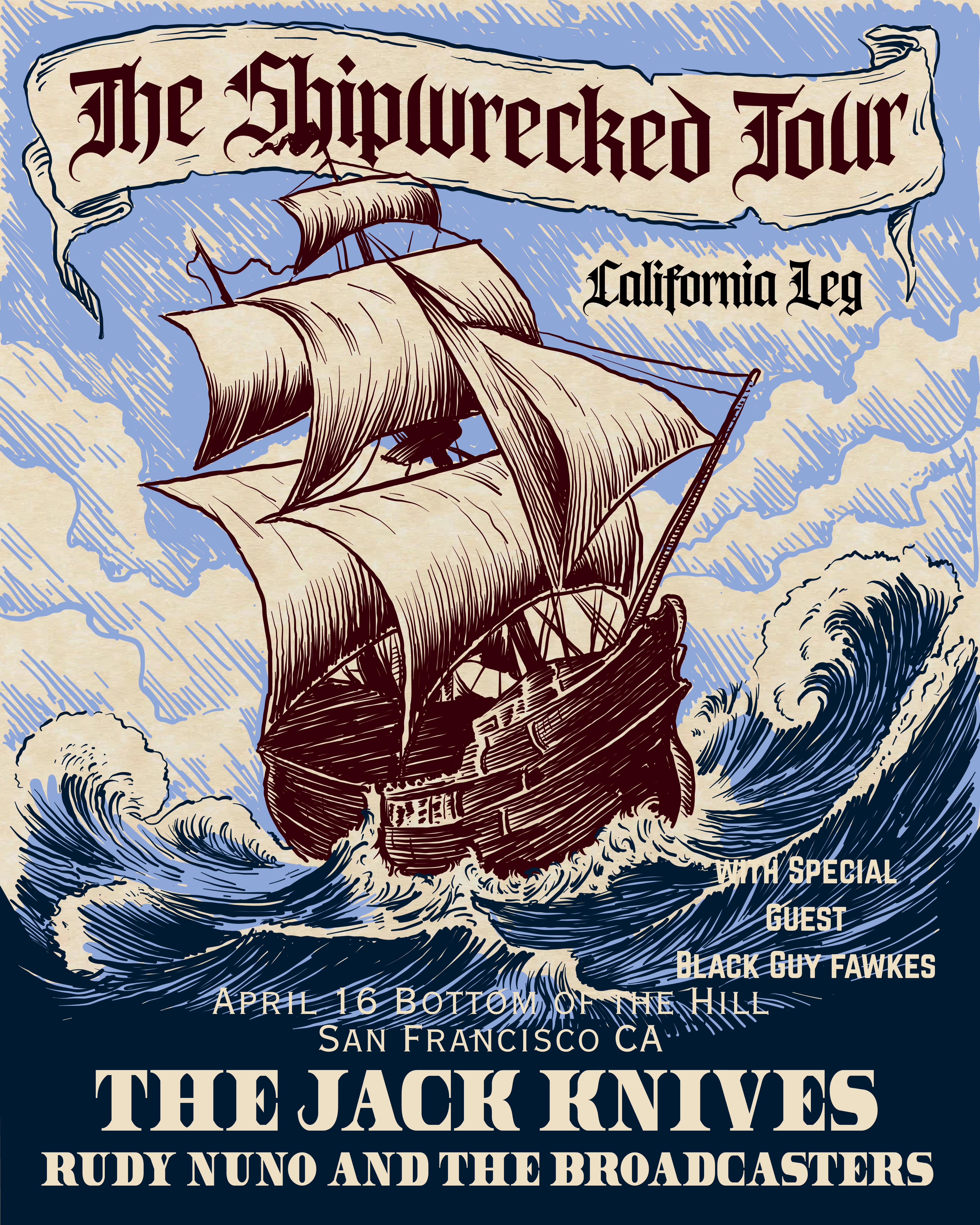 ![]() Thursday April 16 2026 8:00PM doors -- music at 8:30PM ••• 21 AND OVER $13 in advance / $15 at the door The Jack Knives melodic punk rock Rudy Nuño & The Broadcasters punk, rock, and soul Black Guy Fawkes Folk Singer-Songwriter |