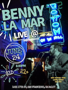 ![]() Saturday April 18 2026 8:00PM doors -- music at 8:30PM ••• 21 AND OVER $17 in advance / $20 at the door $22.01 in advance [17 face value + 5.01 service fee] Boot Juice americana blues rock country folk Cytrus psychedelic funk, disco, electronic, rock, soul, and hip hop Michael Michael Motorcycle indie-Americana |