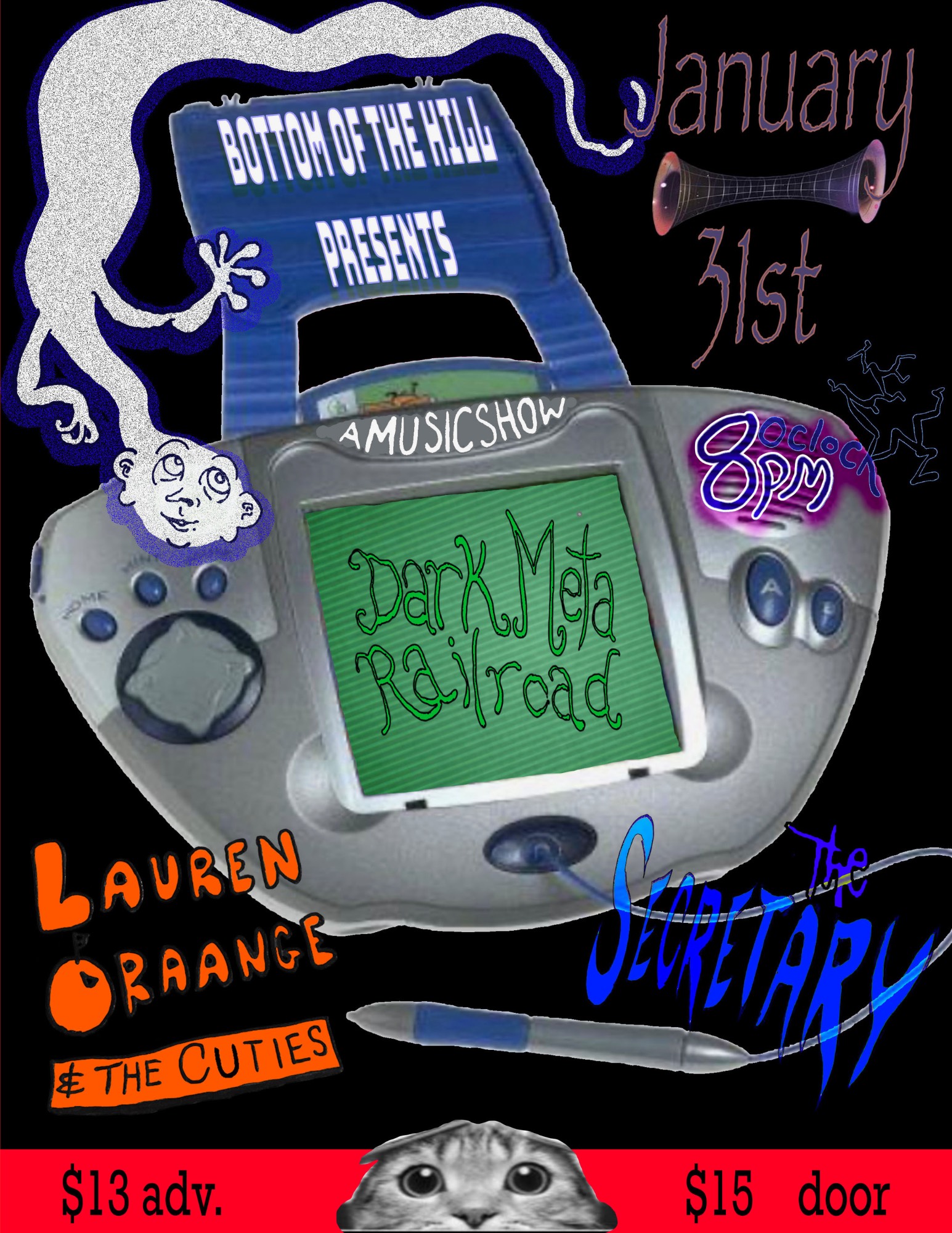 Saturday January 31 2026 8:00PM doors -- music at 8:30PM ••• 21 AND OVER $13 in advance / $15 at the door Dark Meta Railroad indie pop rock synthwave The Secretary art rock, punk Lauren Oraange and the Cuties indie rock/folk/pop |
