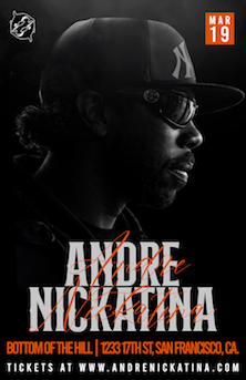 ![]() Thursday March 19 2026 8:00PM doors -- music at 9:00PM ••• 21 AND OVER $50 limited early bird pricing / $60 after that Lommori Productions and Westwayz Music and Booking present... Andre Nickatina Hip hop, hyphy plus special guests |