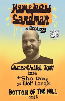 ![]() Tuesday April 14 2026 8:00PM doors -- music at 8:30PM ••• ALL AGES $17 in advance / $20 at the door Homeboy Sandman Hip hop Coolzey hip-hop rockabilly Sha Ray R&B/Hip Hop Wolf Langis dubstep electronica |